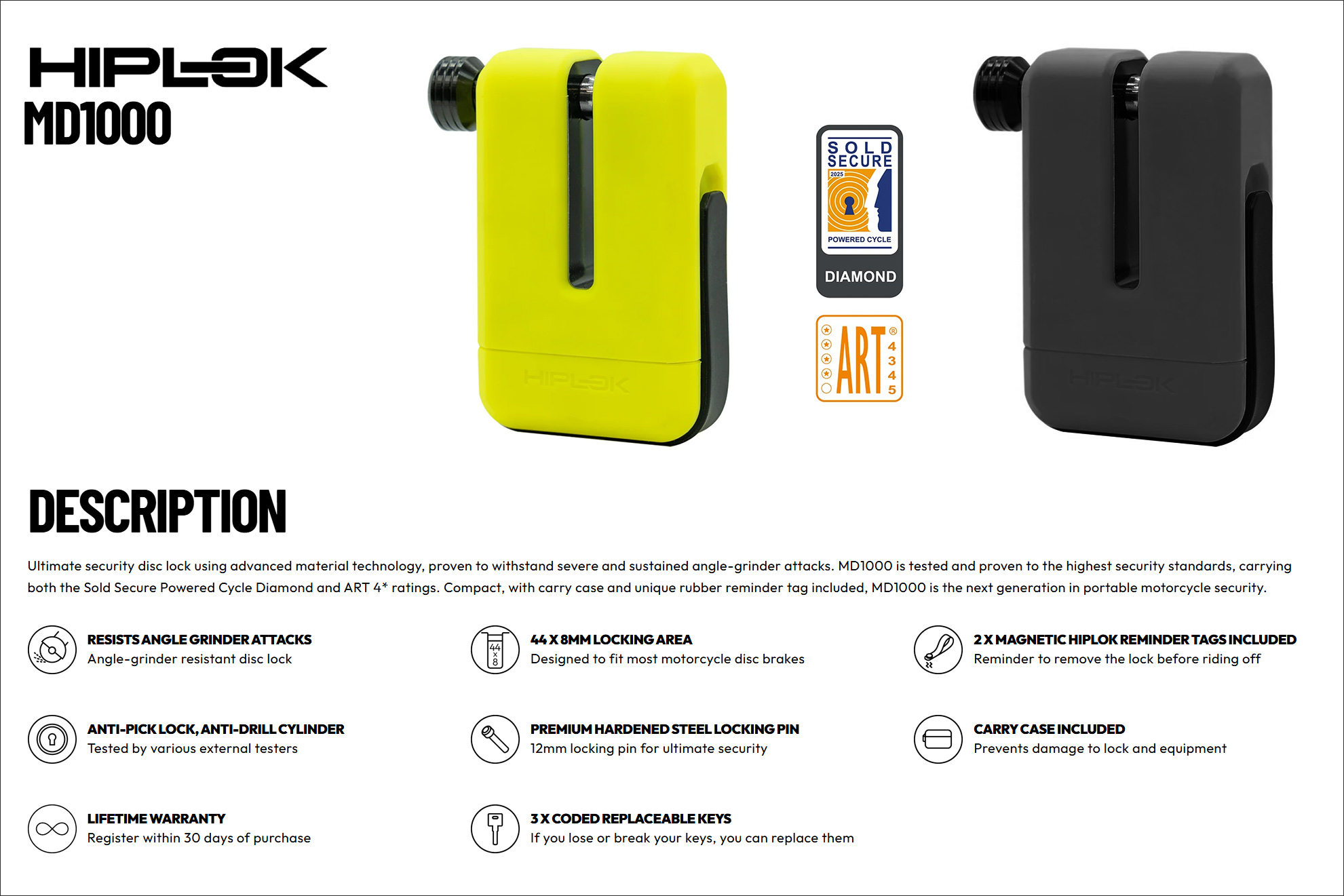 That search ended last week when I came across the British bicycle and motorcycle lock company HIPLOK and their MD1000 Anti-Angle Grinder Motorcycle Disk Lock.